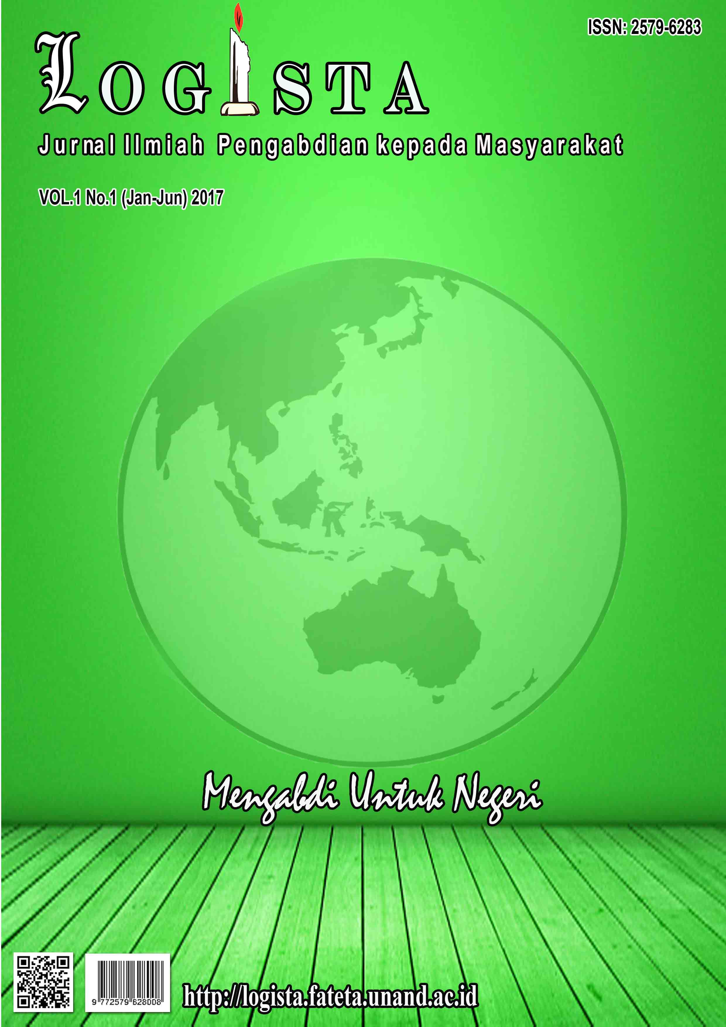 Jurnal LOGISTA merupakan jurnal ilmiah yang meliputi hasil-hasil pengabdian kepada masyarakat yang berhubungan dengan teknologi hasil pertanian, teknik pertanian, teknologi industri pertanian, gizi dan kesehatan masyarakat, farmasi, biologi, klimatologi, agroekoteknologi, ilmu tanah, budidaya pertanian, proteksi tanaman, kedokteran, keluarga dan konsumen, peternakan, perikanan, kehutanan, konservasi, lingkungan, sosial-ekonomi, teknik, dan kewirausahaan yang telah dipertimbangkan dan disetujui oleh Dewan Editor